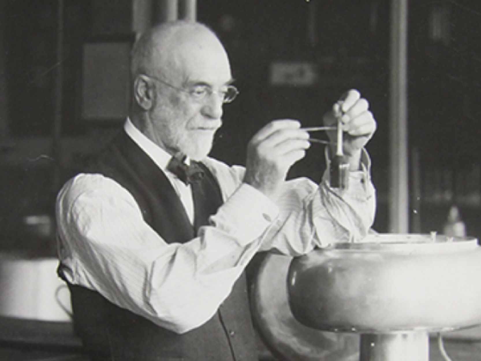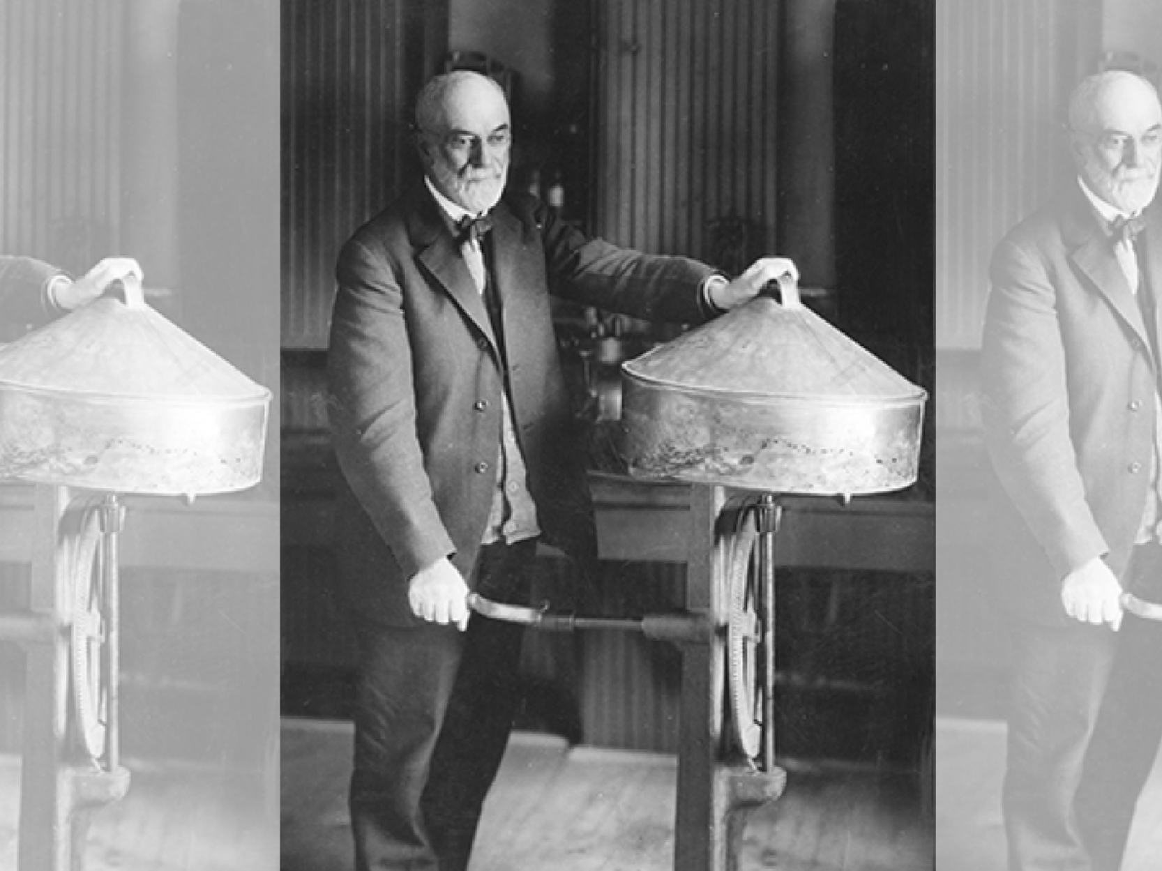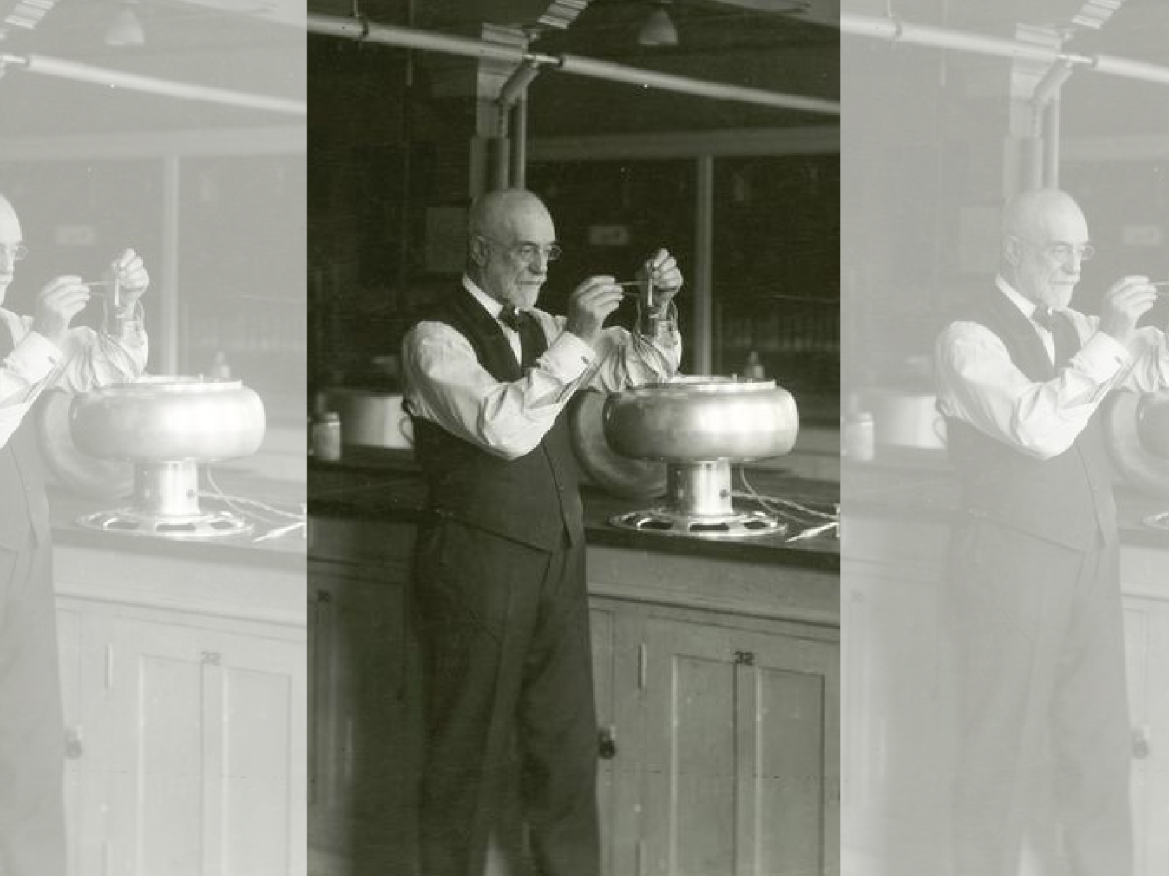 Dr. Stephen Babcock with an electric centrifuge butterfat tester.