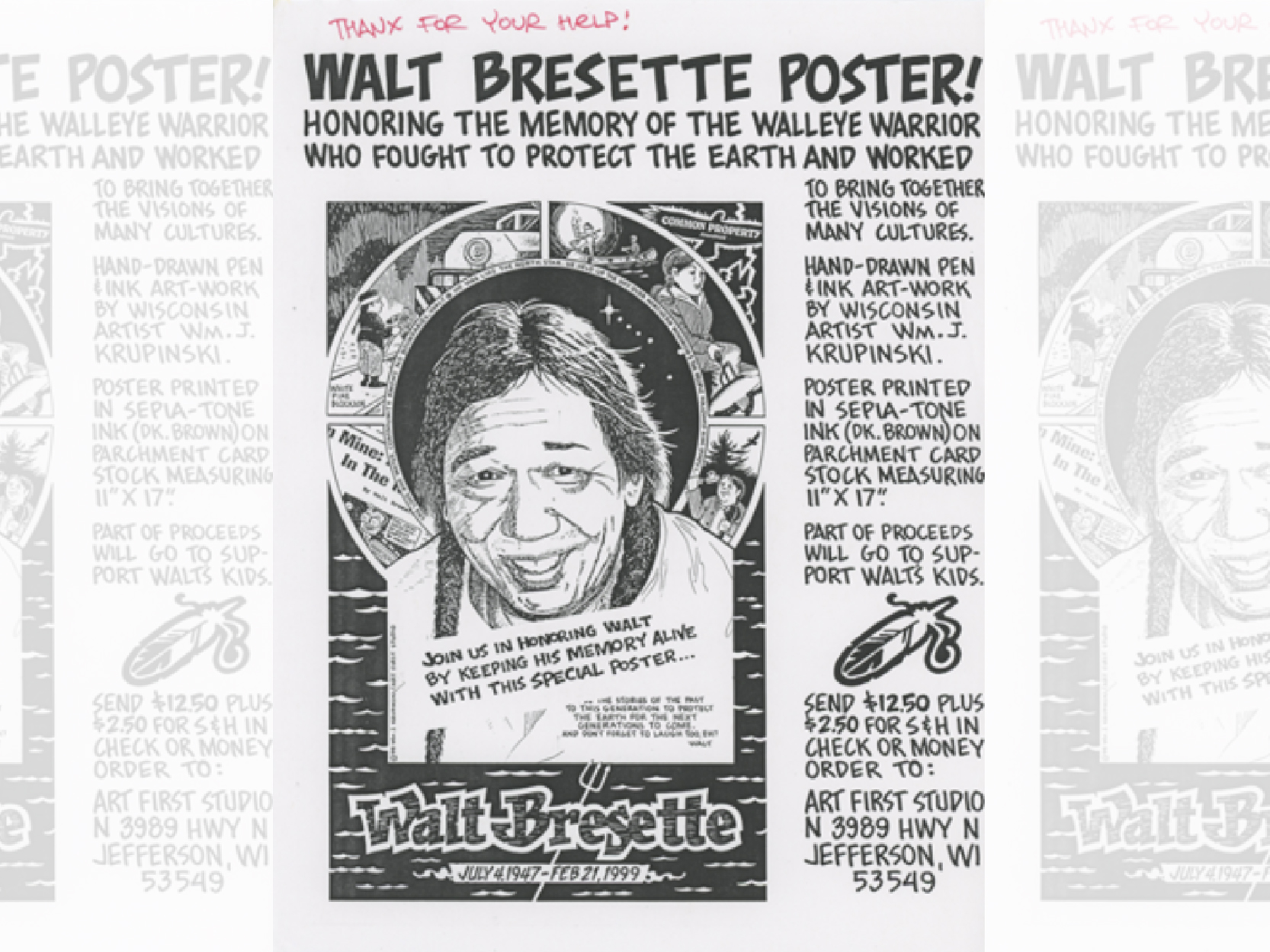 Walter Bresette worked passionately to educate others on issues like sovereignty, American Indian treaty rights, and environmentalism. A member of the Red Cliff Band of the Lake Superior Chippewa (Ojibwe), Walter emerged as a leader during the Northern Wisconsin spearfishing controversies of the 1980s; organizing rallies, making speeches, and publishing his writings on the causes he cared about.