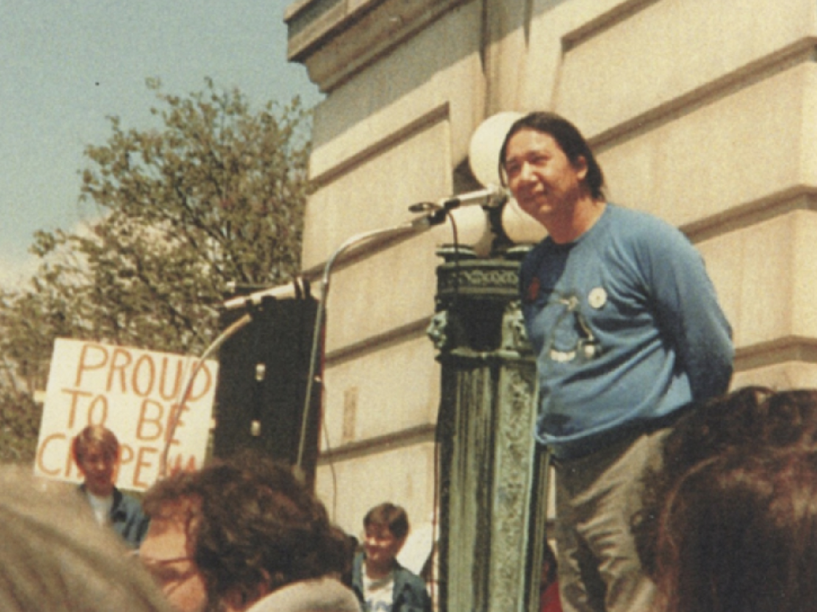 This photo shows Walter speaking at a rally in Madison, Wisconsin, on May 7, 1989.