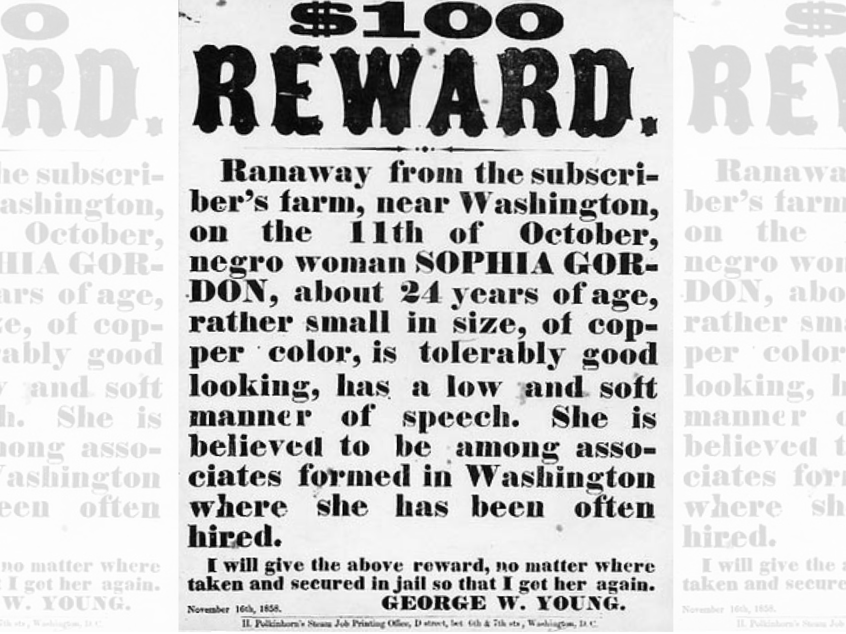 A poster offering a reward for the return of an enslaved person who fled to find freedom (1858).